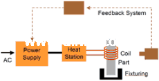 电位线圈 (感应线圈)。感应线圈成为诱导电流到要被加热的金属部件 (称为工件) 的电器 (热) 源。需要工件和作为热源,感应线圈之间没有接触,热量仅限于局部的地区或表面区紧邻线圈。这是因为在感应线圈的交流电 (ac) 具有无形的力场 (益电子-
