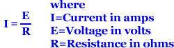 欧姆定律指出,在一个简单的电路,通过电阻(R)的流动的电流(I)的强度正比于所施加的电压(E)。它是由下式表示: