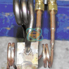 感应钎焊黄铜陷阱块 类别:高频钎焊 简介:客观块加热到 1400F,钎焊陷阱管 assemblyMaterial 铜块和单翼的 tubesbraze pre formsTemperature 1400 F (760 C) 频率 357 kHzEquipment UM-超高频-20kW 感应加热系统建成线圈: 自定义设计 2 匝拆分