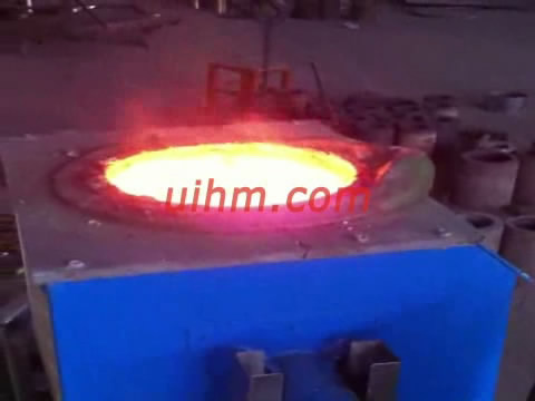 induction melting 150kg copper by 100KW induction heater (UM-100AB-MF) with tilting furnace