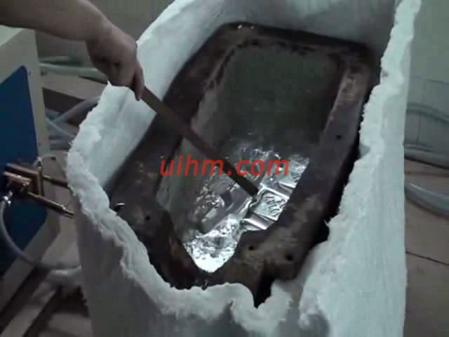 induction melting 140kg silver with tilting furnace by 100KW induction heater (UM-100AB-MF)