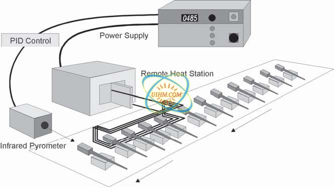 Figure 9: The satellite Star power supply’s output is controlled by the infrared pyrometer’s signal, forming a closed loop control system.