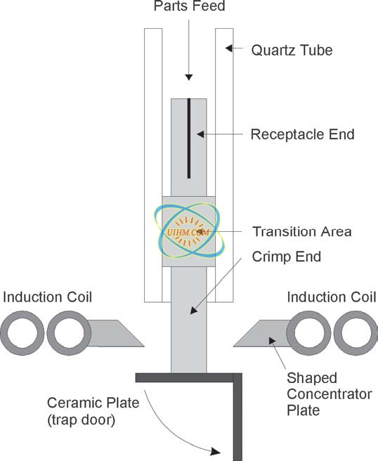 1300°F. Note that the power supply requires only .02 seconds for digital tuning and that the power supply is fully on within .12 seconds from the start of the heating cycle. To rapidly dissipate heat, the connectors should be quenched with water immediately following the heat cycle. This short heating cycle increases throughput, strictly limits the annealed area and maintains good strength associated with cold forming in the remaining section. Conclusion UIHM’s new satellite Star technology has specific advantages for this type of annealing process. The high operating frequency and rapid digital tuning of the satellite Star 3H power supply reduce both time-to-temperature and the heating cycle, thereby improving process repeatability and increasing throughput. - 4 - Precision Induction Heating