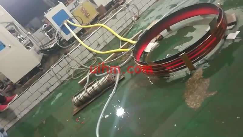 A big steel ring is tempering by UM-120AB-HF induction heater, flexible connection cable is customized for moving the induction coil which is built by solid copper pipe